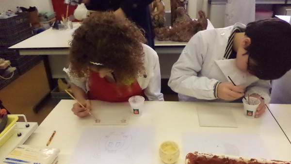Esta actividade teve como objetivo a vidragem e pintura de um azulejo, de forma individual e criativa. Os alunos conceberam um desenho numa folha de papel, a seu gosto (Figura 1), que depois replicaram para o azulejo.